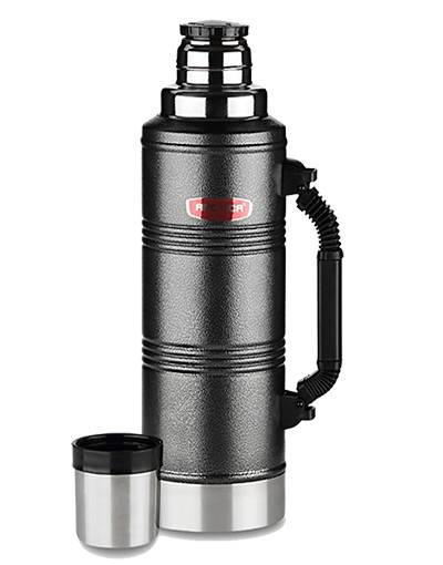 Во-первых, чем больше термос, тем дольше он сохраняет температуру, во-вторых, вы без труда устроите чаепитие для всей своей большой семьи, даже посреди безлюдной степи, если голод и жажда подстерегли вас именно здесь. Уже оцененный по достоинству американский дизайн серии дополнился удобной широкой ручкой. А в остальном все по-старому: узкое горлышко, сохраняющее тепло, глухая пробка с каналами, чтобы не приходилось отвинчивать ее до конца и ударопрочная эмаль на корпусе. Практично, эффективно, красиво – термос Арктика серии 106Р.