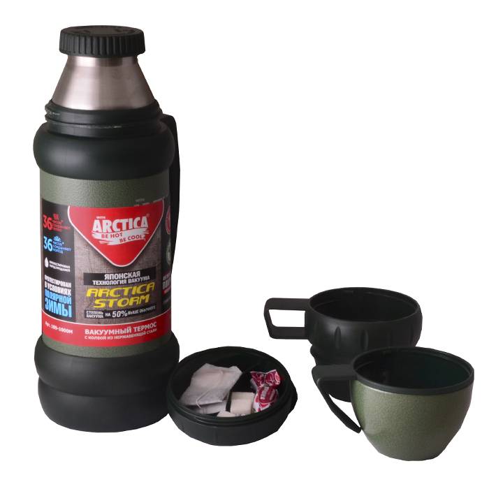 Термос для напитков неоклассического дизайна Арктика 109М серии снабжен удобной ручкой из безопасного для здоровья пластика. Надежно сохраняя высокую температуру внутри, снаружи его корпус будет дарить своему обладателю приятную прохладу. Впрочем, и в жару термос – преполезнейшая вещь. Каким бы раскаленным не было летнее солнце в самом зените, ему не добраться до внутренней колбы, в которой ждет своего часа прохладительный напиток, особенно приятный в томные знойные часы. Термосы Арктика для напитков 109М серии снабжены дополнительной чашкой объёмом 300 мл и контейнером для хранения чая, кофе, сахара и т.п. объёмом 150 мл.
