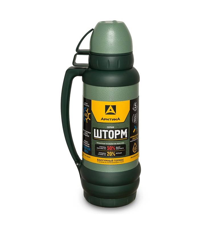 Термос для напитков неоклассического дизайна Арктика 109М серии снабжен удобной ручкой из безопасного для здоровья пластика. Надежно сохраняя высокую температуру внутри, снаружи его корпус будет дарить своему обладателю приятную прохладу. Впрочем, и в жару термос – преполезнейшая вещь. Каким бы раскаленным не было летнее солнце в самом зените, ему не добраться до внутренней колбы, в которой ждет своего часа прохладительный напиток, особенно приятный в томные знойные часы. Термосы Арктика для напитков 109М серии снабжены дополнительной чашкой объёмом 300 мл и контейнером для хранения чая, кофе, сахара и т.п. объёмом 150 мл.