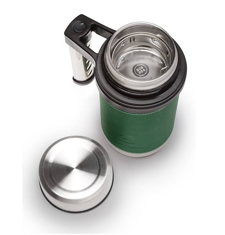 Мы давно привыкли к тому, что чашкой для каждого термоса служит его собственная крышка. Это значит, что надо раскрыть термос, налить напиток, поставить термос и только потом можно приступать к чаепитию. Во многих ситуациях это не очень удобно, например в автомобиле или в электричке. Но разве можно еще более упростить процесс? Можно! Для этого и была создана термос-кружка Арктика. Между внутренней колбой и внешним корпусом (выполненными из нержавеющей стали марки 18/8) находится вакуум, позволяя очень долго сохранять тепло. Можно просто снять крышку и пить прямо из термос-кружки! Но не только пить. Широкая горловина этой универсальной термопосуды позволяет хранить в ней и еду. От своих собратьев термос-кружка Арктика 406 серии отличается одной интересной особенностью – наличием в горловине ситечка, которое можно использовать для заваривания чая. Это небольшое и достаточно простое устройство очень полезно в походных условиях. Заварив чай, можно запросто избавиться от использованных чаинок, и пить чистый ароматный напиток. Ситечко можно легко снять и оставить дома, если знаете, что оно Вам не пригодится. Помимо этого, термос-кружка обладает улучшенными теплосберегающими характеристиками за счет улучшенной конструкции. Универсальность, вместительность и надежность – то, чем славятся изделия компании Арктика, нашли свое место и в этой замечательной термос-кружке.