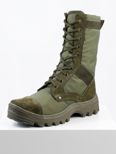 Именно этим требованиям и отвечает модель 35 RUSH Olive. Использование в ней натуральной кожи «Велюр» сошло к минимуму, усиленными остались лишь те части ботинка, которые наиболее подвержены износу или являлись травмаопасными для владельца.