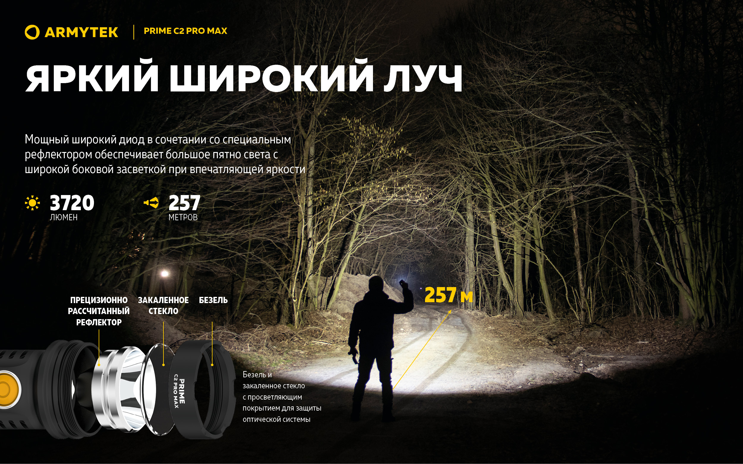 Wizard C2 Pro Max — это новейшая модель востребованной во всем мире многофункциональной линейки Armytek Wizard. Не просто яркий, ошеломляющий световой поток в 4000 люмен.