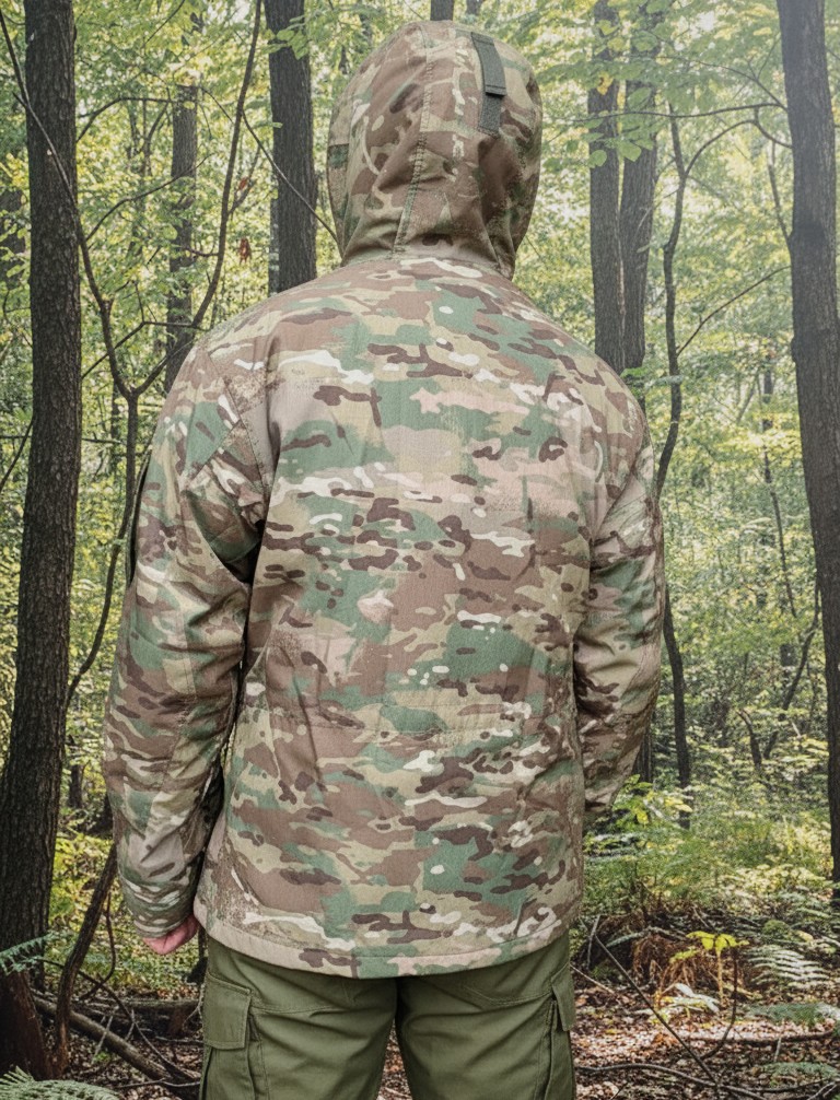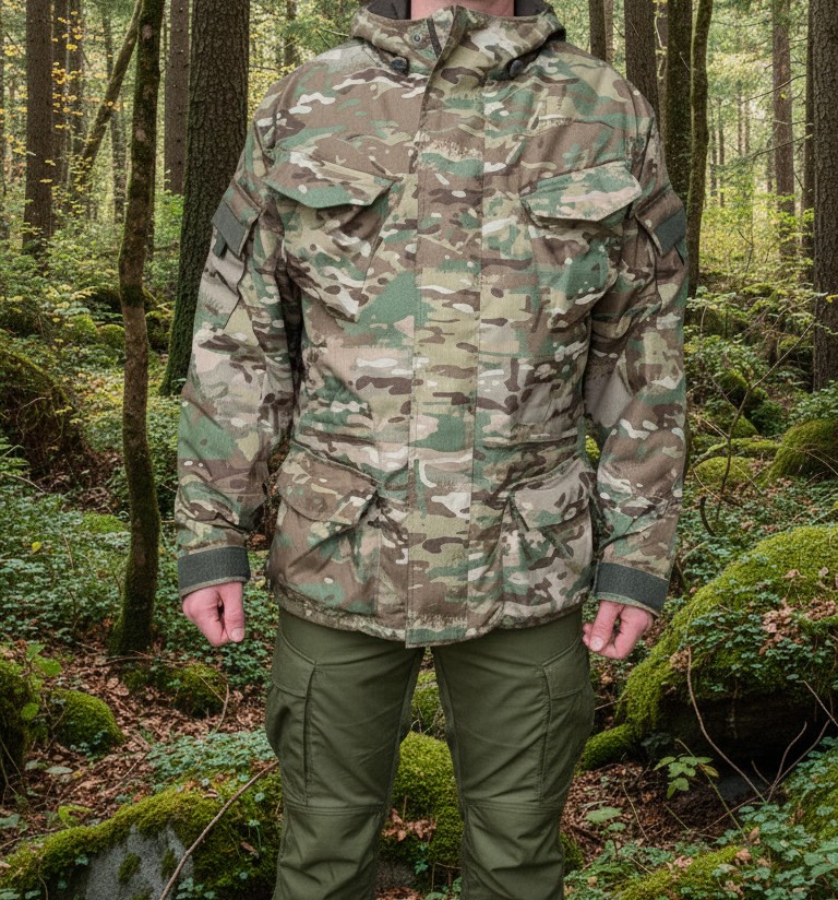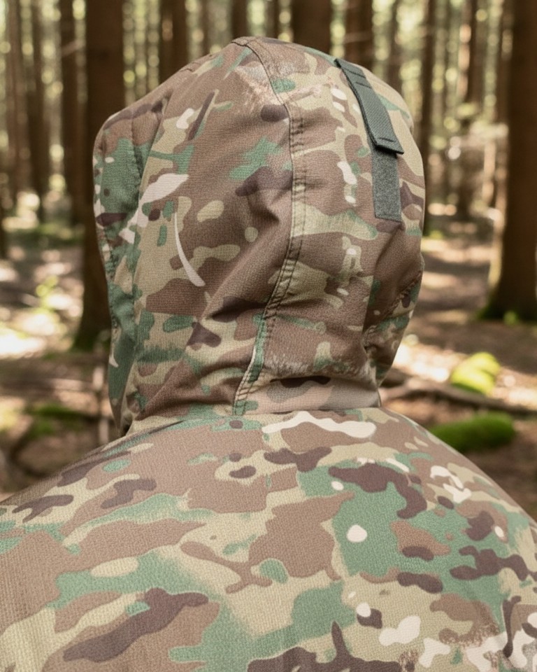 Куртка удлиненная, с застёжкой на тесьму «молния», дублированная ветрозащитной планкой на «велкро», капюшон с тремя регулировками: по лицевой части, тыльной части и козырек.