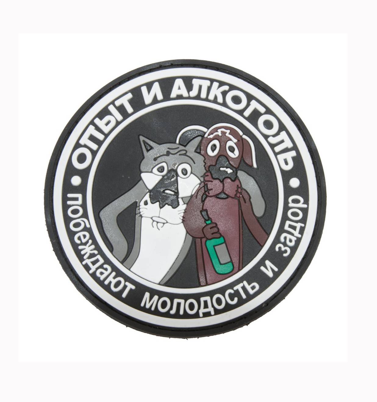 Нашивка PVC/ПВХ с велкро "Опыт и алкоголь" BLACK 80мм