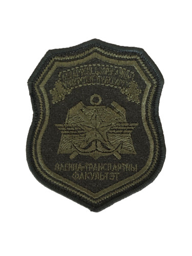 Шеврон военно-транспортный факультет БНТУ на боевую форму оливковый одноцветный вышитый на липучке